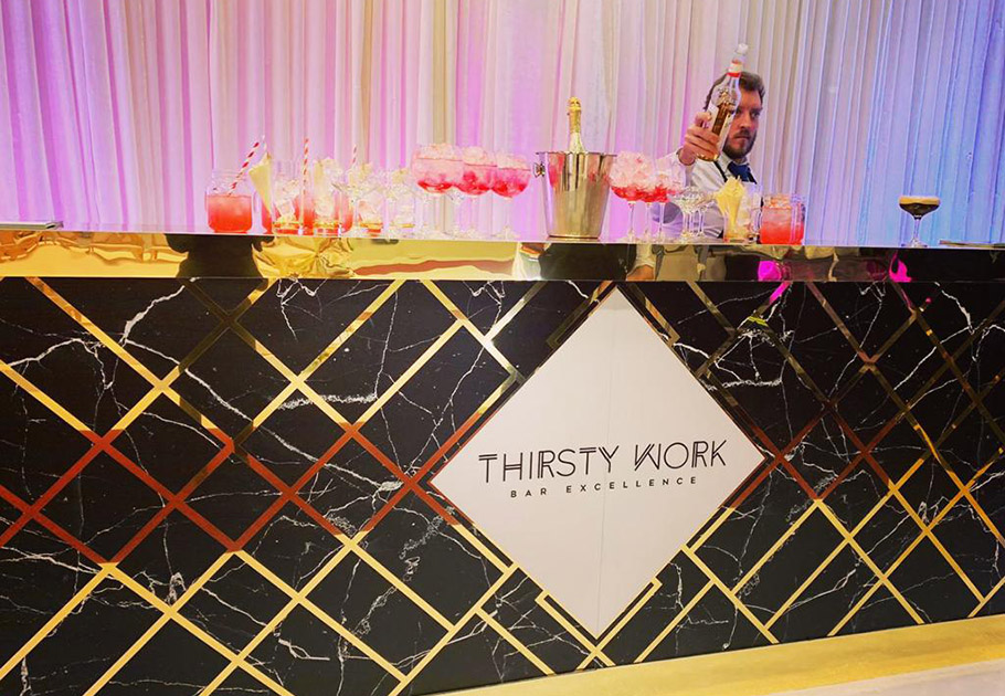 Thirsty Work Bars delivers stylish, fully serviced mobile bar experiences tailored for weddings and luxury events. Known for exceptional service and beautifully presented bars, their professional team creates a seamless drinks experience that elevates every celebration.